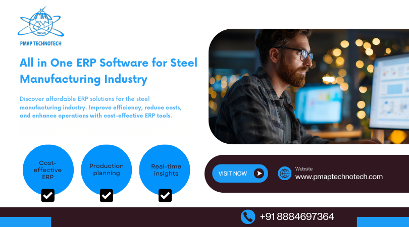 ERP Software for Steel Manufacturing Industry provides tools for monitoring, planning, and acting quickly in all of these areas.