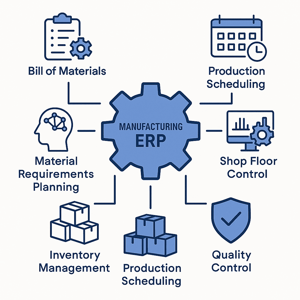Answer: ERP software for manufacturing companies in India is an integrated system that manages production, inventory, quality, finance, GST billing, and supply chain operations on a single platform. It gives manufacturers real-time visibility, better control, and improved operational efficiency.